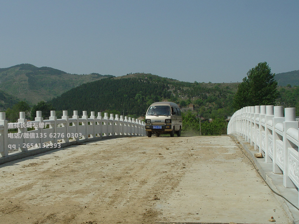 柵欄式石欄桿:欄桿與立柱按等間距或又規(guī)則變化排列,用一根通欄扶手鏈接。這種村口橋邊安裝石欄桿,一般不加雕飾,只求規(guī)格嚴整、簡潔明快、連續(xù)流暢、施工簡便,適用于各種村口橋型。